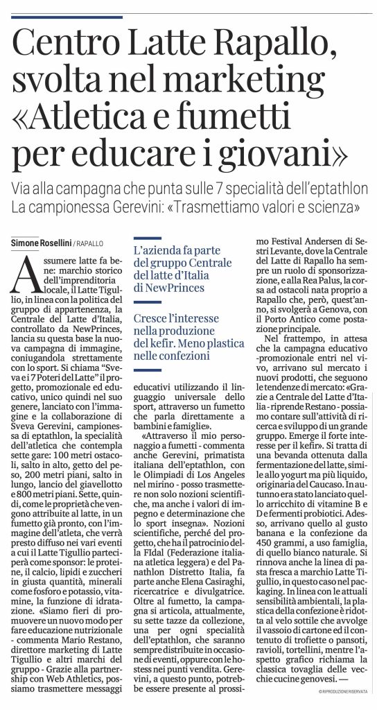 Nell’articolo intitolato “Atletica e Fumetti per educare i giovani”, lo storico quotidiano ligure evidenzia e celebra l’impegno di Latte Tigullio nel promuovere il benessere e i corretti stili di vita tra le nuove generazioni. L’obiettivo condiviso è chiaro: trasformare l’educazione nutrizionale da un concetto teorico a un’avventura coinvolgente per bambini e famiglie.